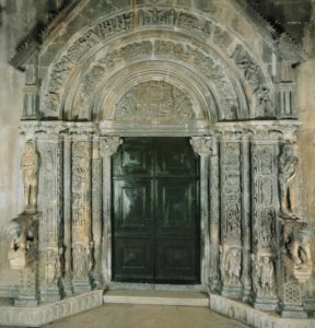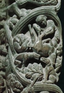 Još jedan trag nalazi se na portalu Trogirske Katedrale majstora Radovana, sa obrađenim osnovnim tehnikama lova: lov na konju kopljem, lov pješaka kopljem na medvjeda i divlju svinju, lov sokolom i lov nožem na divlju svinju uz pomoć pasa.