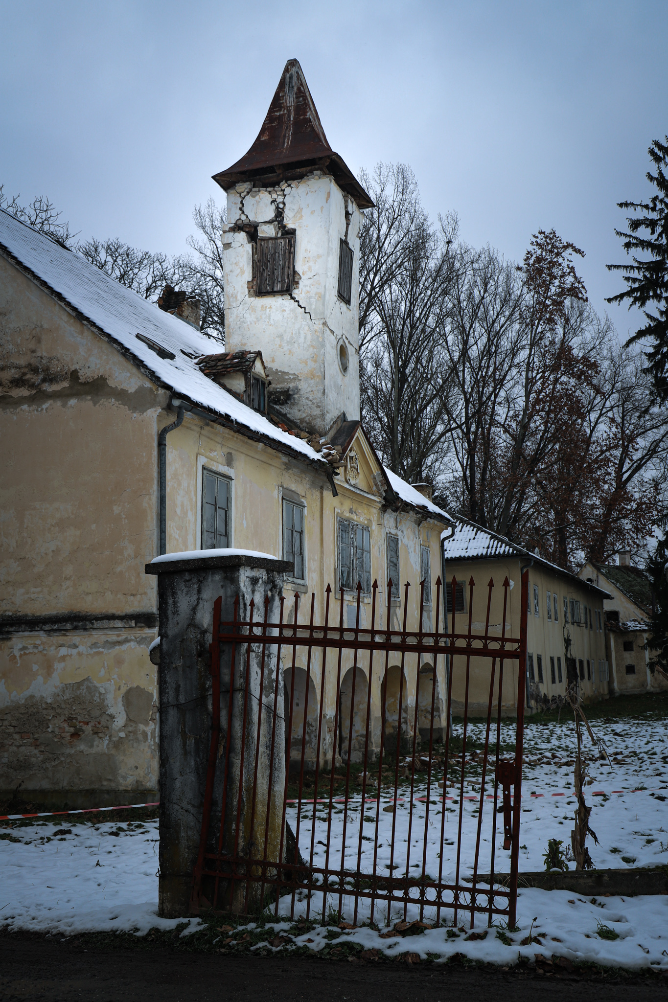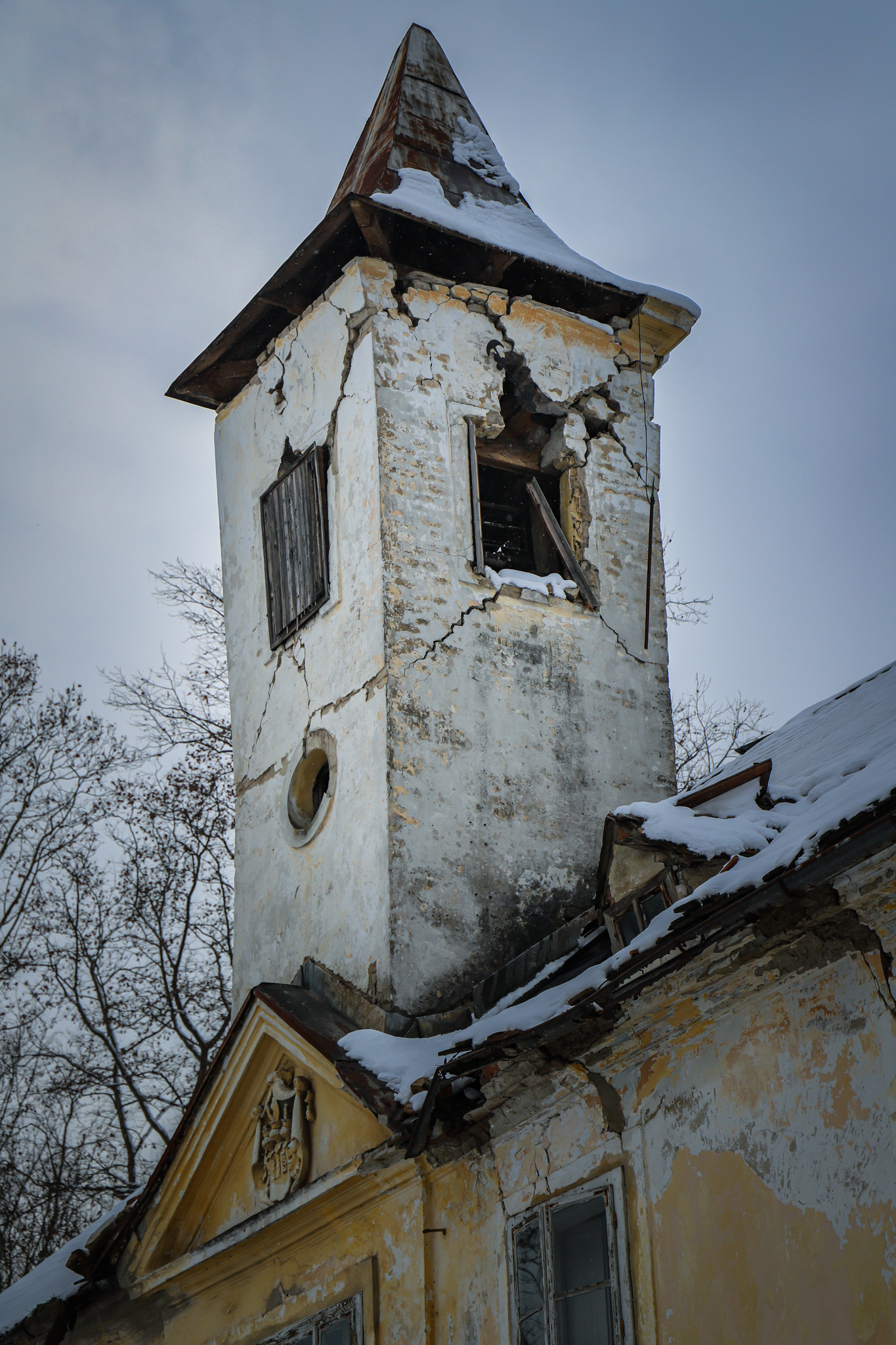 Toranj kurije građene od opeke 1831. godine za vrijeme Tome Keglevića ispod kojeg se nalazi grb u nedavnom je potresu teško stradao i može se urušiti svaki čas.