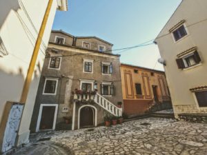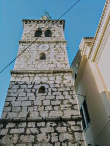 S druge strane, stoji zvonik crkve sagrađen 1710. godine koji je ostao stajati usprkos vremenu i potresima. Niz ulicu, prema gore, vidi se i Frankopanski kaštel, gdje ponovo postajemo svjesni svjetovnog problema koji muči današnje stanovnike Bakra. Kroničan nedostatak parkinga znači da se automobili nalate posvuda što je čest uzrok svađe među ljudima.