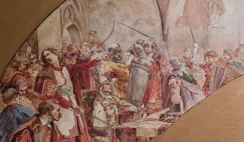 Stoljećima kasnije, zidna slika u križevačkoj Crkvi Svetog Križa, koju je naslikao Oton Iveković, prikazuje umjetničku interpretraciju krvavog epiloga tog događaja koji danas nosi naziv krvavi križevački sabor. Postavljena je 1914. godine i najveće je djelo Otona Ivekovića, hrvatskog slikara. Inspiraciju je nerijetko tražio u povijesnim likovima i događajima.