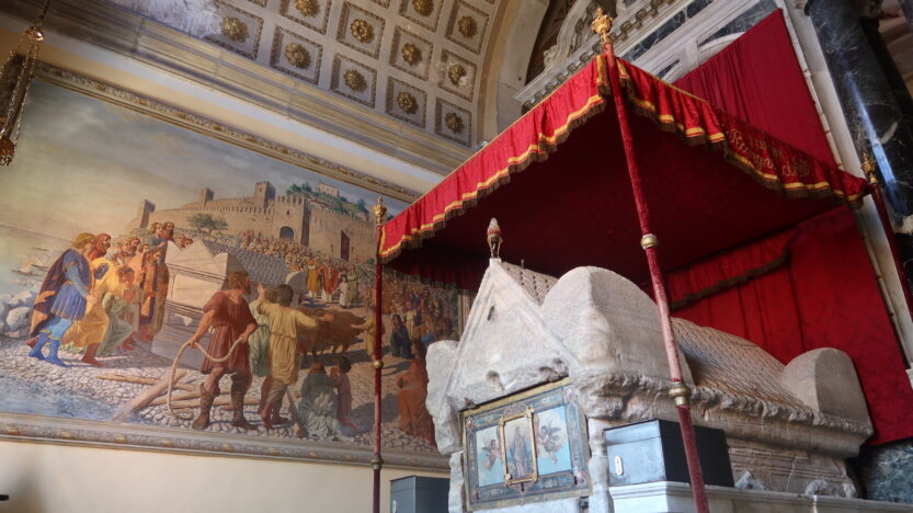 Prema njoj, 800. godine u sarkofagu od grčkog mramora, koji je inače datiran u 6. stoljeće, doplutalo je tijelo mlade, lijepe svetice- Sv. Eufemije Kalcedonske. Njezino ime na grčkom znači “ona koja dobro govori”.