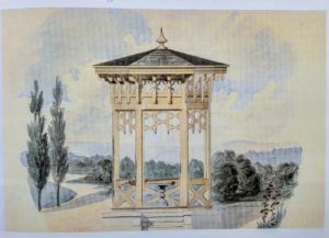 Skladan klasicistički paviljon s drvenim stijenama koje razbijaju polukružni prozori i dva ulaza, počiva na kamenom postolju. Na limom prekrivenom krovu podignuta je laterna koja počiva na elegantnim stupićima što oponašaju velike polustupove donje konstrukcije.