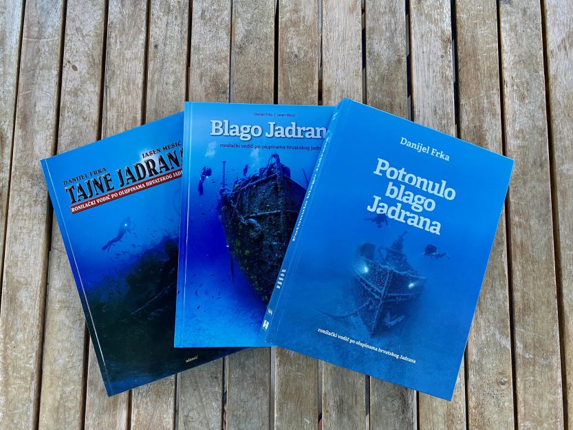 Autor Danijel Frka napisao je novo sveobuhvatno antologijsko izdanje “Potonulo blago Jadrana”. Nova senzacionalna monografija na 590 stranica opisuje i ilustrira ukupno 75 zarona na najvažnije olupine s dna Jadrana, od Savudrije do Prevlake.