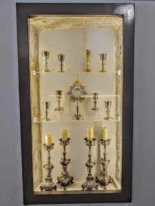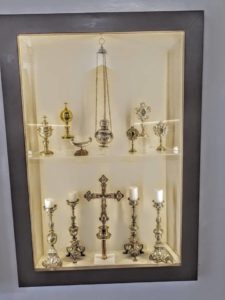 U nišama je izloženo srebrno i pozlaćeno liturgijsko posuđe izrađeno u venecijanskim zlatarskim radionicama u razdoblju od 16. do 18. stoljeća.