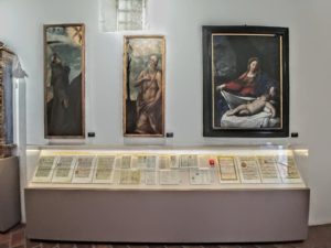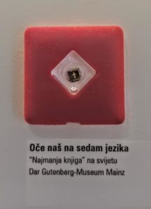 U vitrinama se mogu vidjeti replike isprava, rukopisa, oslikanih graduala i knjiga koje se čuvaju u vrlo vrijednoj samostanskoj knjižnici koja broji oko 30 000 svezaka i 95 inkunabula od kojih je svjetski raritet jedan od ukupno tri sačuvana primjerka prvog izdanja latinskog prijevoda Ptolomejeva atlasa svijeta tiskanog u Veneciji 1511. godine.