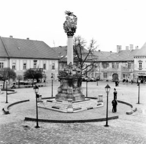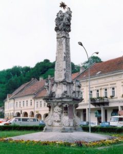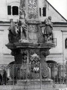 Tako godine 1749. Požežani na Trgu Svetog Trojstva podižu barokni zavjetni-spomenik protiv kuge koja je 1739. godine poharala grad i odnijela 798 života. Iz tog razloga popularno je poznat i pod nazivom „kužni pil“.