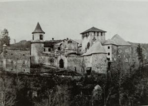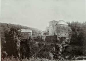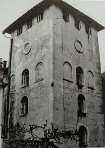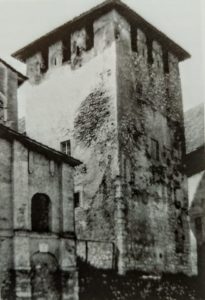 Prostor unutar ruševnih zidina posve je uređen, gotovo hortikulturno dotjeran, njime šeće muškarac u odijelu i s cilindrom na glavi, ali su istodobno u pozadini dvije koze, nedaleko kojih sjedi pastir. Da su zidovi, posebno utočišna kula, dvadesetak godina prije bili već posve ruševni, kako je to Manzoni nacrtao, potvrđuje i akvarel Franza Jaschkea iz 1808. godine.