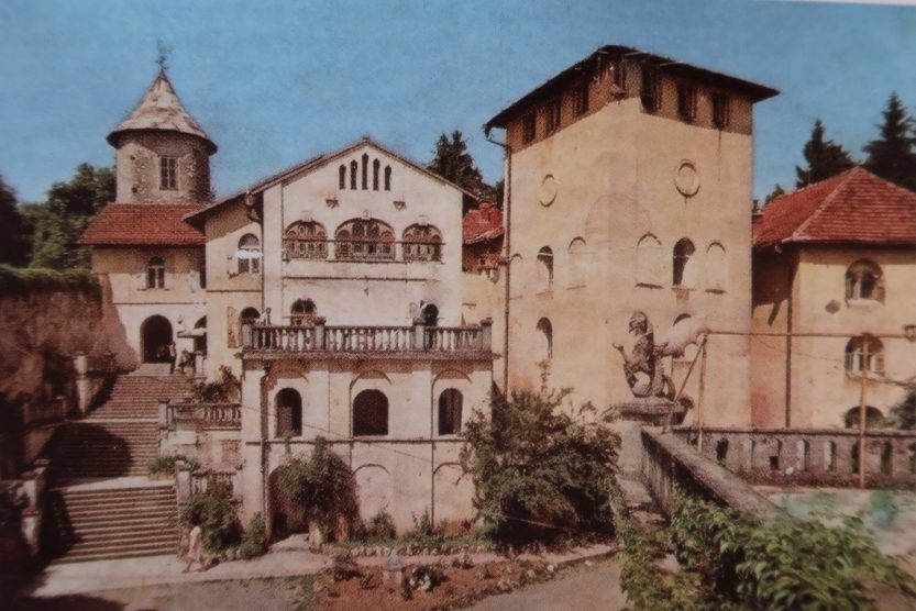 Rijetko viđena fotografija dvorca Bosiljevo nastala tijekom druge polovine 20. stoljeća na kojoj je vidljiva danas netragom nestala skulptura Basiliska – simboličkog čuvara dvorca, koju je po narudžbi Lavala Nugenta izradio Anton Dominik Fernkorn.