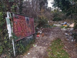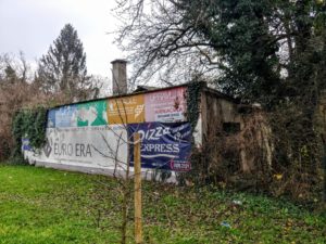 Izmiče i 2019 godina. Zarastala metalna ograda zbog manje vegetacije omogućuje bolji pogled na sada omalenu parcelu okruženu cestom, novogradnjama i nekim drugim snovima. Iza zida koji s vanjske strane nosi jumbo plakate koji potiču daljnji razvoj potrošačkog društva gori vatra.