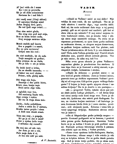 Ipak, Starčević je imao i drugu, široj javnosti manje poznatu stranu, onu pjesničku. Nakon svršetka gimnazije počeo se baviti književnim radom i prvi put se pojavljuje 1845. godine sa svojim literarnim radovima u Gajevoj „Danici horvatskoj, slavonskoj i dalmatinskoj“ pod pseudonimom A. V. Rastevčić.
