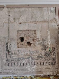 U Banskim dvorima upravo traje obnova, i pronađene su nakon što su radnici sa zidovaskinuli karakteristične crvene tapete. Ispod njih, a mjestimice i pločica otkrili su nešto što nitko nije očekivao – freske nepoznatog autora koje potječu iz doba o kojem se zasad samo nagađa.