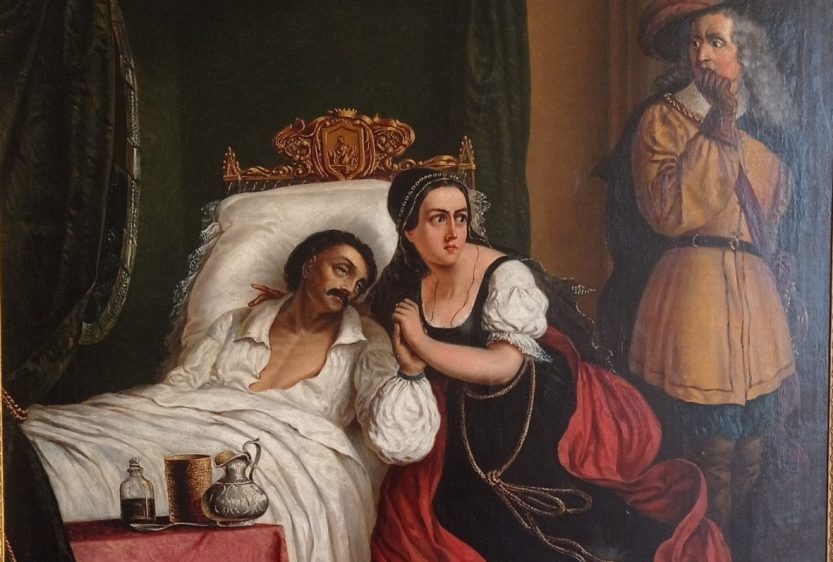 Eventualno prispodobljavanje slike prikazu epizode iz plemičke obitelji Zrinski, a što je sukladno jednoj izložbenoj cjelini ove Izložbe, kao i pretpostavke da bi se moglo raditi o djelu prvog hrvatskog profesionalnog slikara Vjekoslava Karasa (Karlovac, 1821. 1858.) čine ovo djelo prigodnim dodatkom i eksponatom na izložbi, a sve kako bismo ukazali da je slika nepregledno polje interpretativnih mogućnosti, a izložba svojevrsni medij koji takav istraživački pothvat upravo potiče.