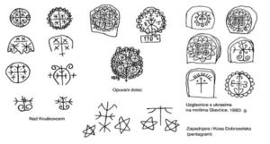 Novopridošlo stanovništvo moglo je donijeti sa sobom iz sjeverne Dalmacije zapamćene ikonografske motive s biliga (mirila), stećaka i drugih vrsta nadgrobnika ruralnih sredina i prenijeti ih u novi velebitski prostor. Moguće je da je većina u to doba još pamtila starovjerske ideogramske motive u kombinaciji s kršćanskim simbolom križa, a moguće je da su doseljenjem zatekli neke slične ili iste simbole na mirilima i grobovima iseljenog srednjovjekovnog južnopodgorskog stanovništva.
