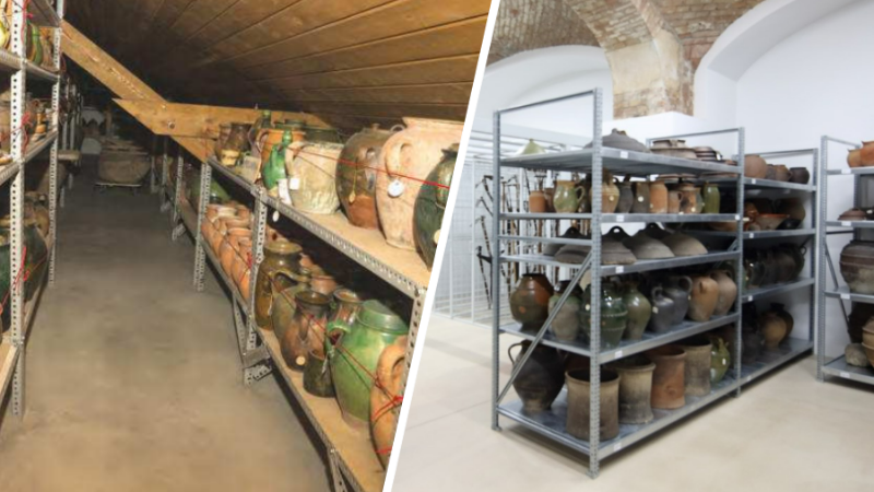 Hrvatska je ovih dana dobila novu, jedinstvenu muzejsku čuvaonicu. Nalazi se na zagrebačkom Gornjem gradu, odnosno u, sve do nedavno napuštenoj, zgradi Zemaljske uzorite pivnice u Kačićevoj ulici. Riječ je o projektu koji je Etnografski muzej proveo uz potporu Ministarstva kulture i medija koje je sredstvima Fonda solidarnosti sufinanciralo dio zbrinjavanja muzejske građe. Ista se dosad čuvala kao što je prikazano na fotografijama označenima sa “prije”.