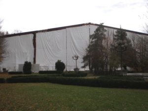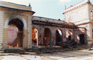 Građevina je bombardirana u više navrata, te je potpuno izgorila u jesen 1991 . Više godina stajala je bez krova, a 1998. započeta je obnova pod vodstvom njemačke tvrtke TLP – Therme Lipik Projektmanagement GmbH. Godine 2000. oko zidova zgrade podignuta je zaštitna skela s krovom, nakon čega je većim dijelom obijena unutarnja i vanjska žbuka, a neki su zidovi prezidani.
