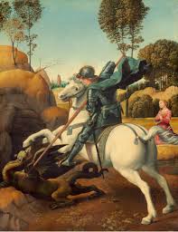 Sveti Juraj je tako prikazan i na stećcima, gdje svetac umjesto zmaja ubija vuka koji je u tradiciji južnih Slavena i nekih drugih indoeuropskih naroda demonska životinja. Seljaci su ga najprije štovali kao zaštitnika konja, a potom i ostalih domaćih životinja. U narodnoj predaji, zaštitnik je od teških bolesti: bolesti s jakim grčevima, visokom vrućicom, padavicom i kužnom epidemijom. Zaštitnik je ratara, pastira, konja i ostale stoke, zemlje, usjeva i zelenila. Za svog zaštitnika proglasili su ga i križari, vojnici, ratni konjanici, a djevojke ga štuju kao zaštitnika od napasnika. Svetome Jurju narod se preporuča i za zaštitu od zmija i vještica.