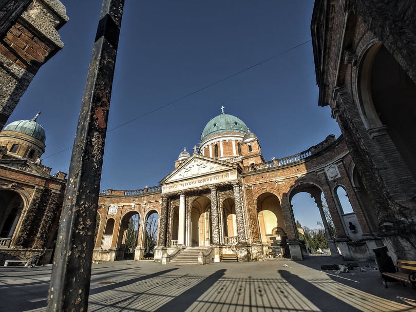 Majstori restauratori proveli su noć u pripremi opreme za spašavanje četiri ugaone kule mirogojske crkve Krista Kralja koja se nalazi na samom ulazu i vezana je uz mirogojske arkade.